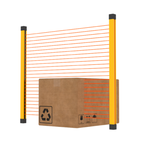 この機構は、光源を内蔵した投光ユニットと、それに対向して設置される受光ユニットを対向して設置することで構成されます。両ユニットの間に手や体が入ると、光が遮断されたことを瞬時に感知し、機械に非常停止の信号を出力します。